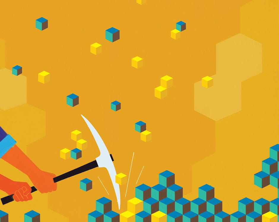 Part of this is because of the way blockchain is designed, so that if one person or group controls more than 50 percent of the computers on the network, they can control which blocks are appended to the blockchain. In blockchain parlance, each block, or group of transactions, is mined when individuals, or miners, compete to solve complicated math puzzles quickly. The winner validates the block, attaches it to the end of the blockchain, and reaps a reward in Bitcoin. Some miners have banded together into mining pools that work together in the competition and split the rewards they win. Today there are a number of large Bitcoin mining pools. I don’t think there’s any one that’s over 50 percent; but in combination, they could get to 50 percent somewhat easily.