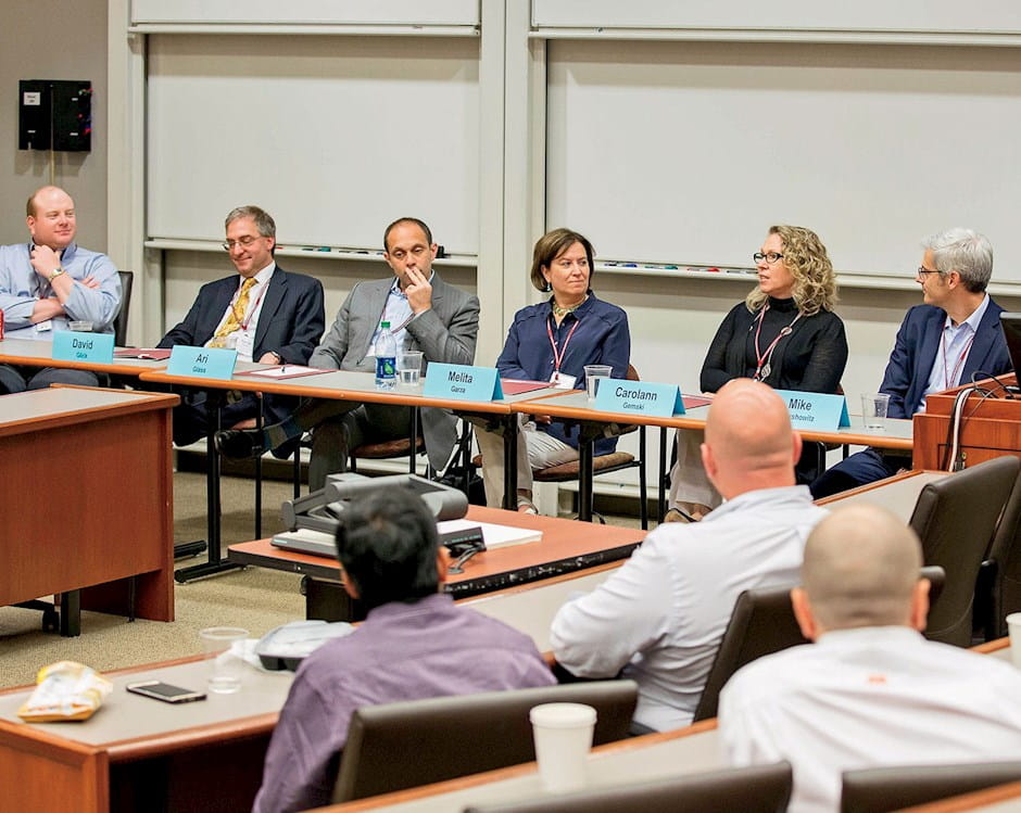 During moderated panel discussions and a meet-and-greet mixer, Executive MBA alumni spent the one-day program in June at Gleacher Center passing along their wisdom on the topics of how leaders grow, how experience helps to guide management decisions, and how Booth shaped their careers.