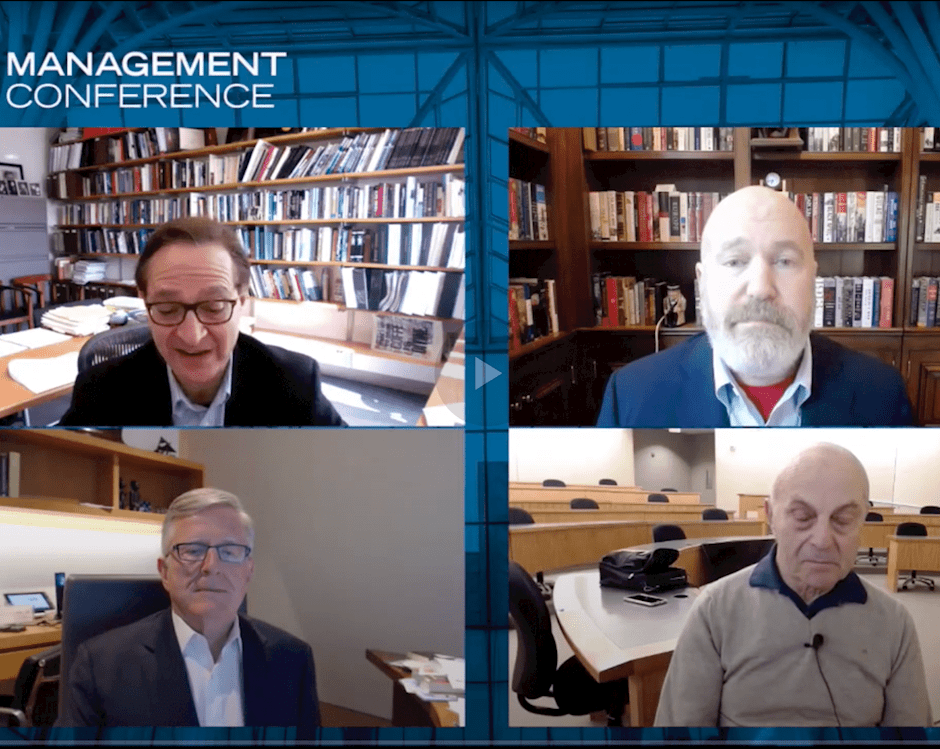 Cliff Asness, MBA ’91, PhD ’94, David Booth ’71, and Eugene F. Fama, MBA ’64, PhD ’64, discussed their views on the current and future state of asset prices and investing in a conversation moderated by professor Steven Neil Kaplan.