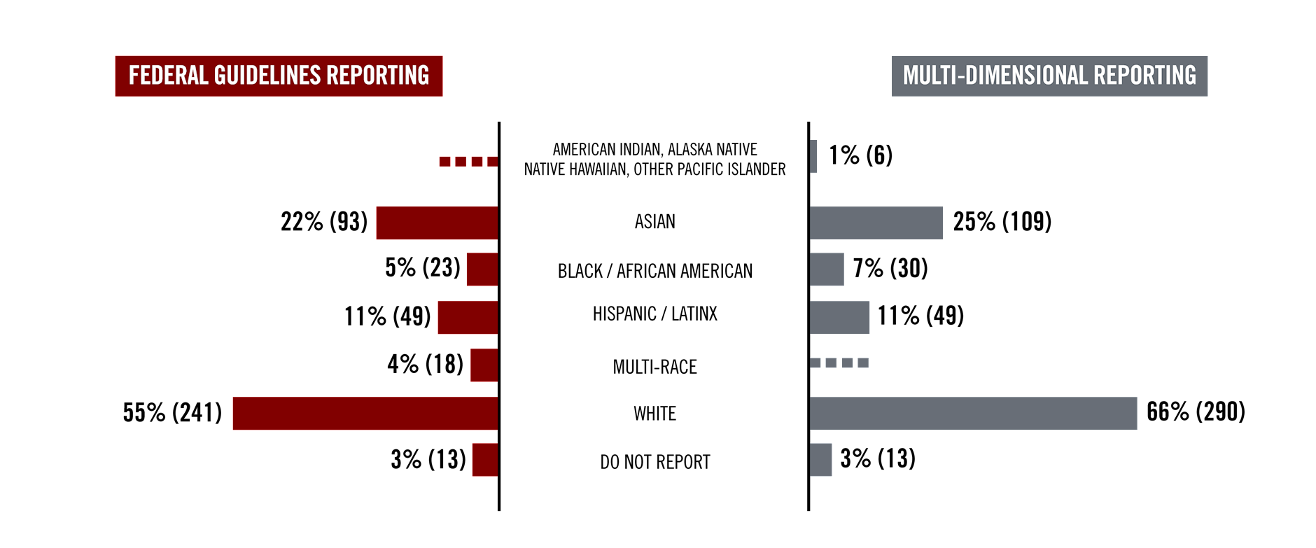 Chicago Booth adheres to federal guidelines for maintaining, collecting, and presenting data on race and ethnicity as provided by The Department of the Interior via the Office of Civil Rights. These standards allow students who are U.S. citizens and permanent residents to self-identify their ethnicity and race, with the option to select more than one race and/or ethnicity. This results in an aggregate that may be more than 100 percent.