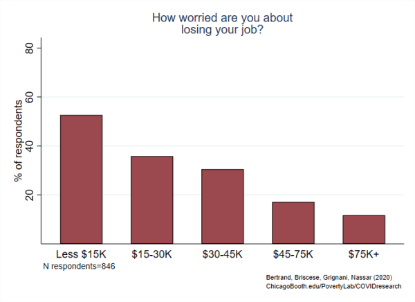 Americans living in lower income households are substantially more worried about being unemployed, losing their health-care coverage and not being able to afford mortgage and other expenses. These preliminary analyses are showing how the coronavirus is further exaggerating pre-existing inequalities in the U.S., and how quickly (the survey was administered in the first week of April) the crisis has already hit lower-income Americans.