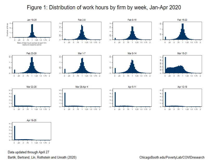 A third week update on COVID 19's impact on labor market impacts from Alexander W. Bartik, Marianne Bertrand, Feng Lin, Jesse Rothstein, and Matt Unrath.