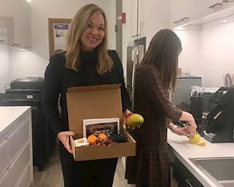 In 2018, KitcheNet extensively researched the unhealthy effects of “office snacking,” which typically includes eating unhealthy food options such as free pizza, potato chips, and doughnuts. According to the Center for Disease Control and Prevention, only 1 in 10 Americans eat enough fruits and veggies. The research shows that, on average, American workers sneak in about 1,300 calories per week from foods and beverages they got at work. To combat this, KitcheNet designed a fruit subscription service and program that educates employees about their eating habits and presents healthy fruit alternatives.