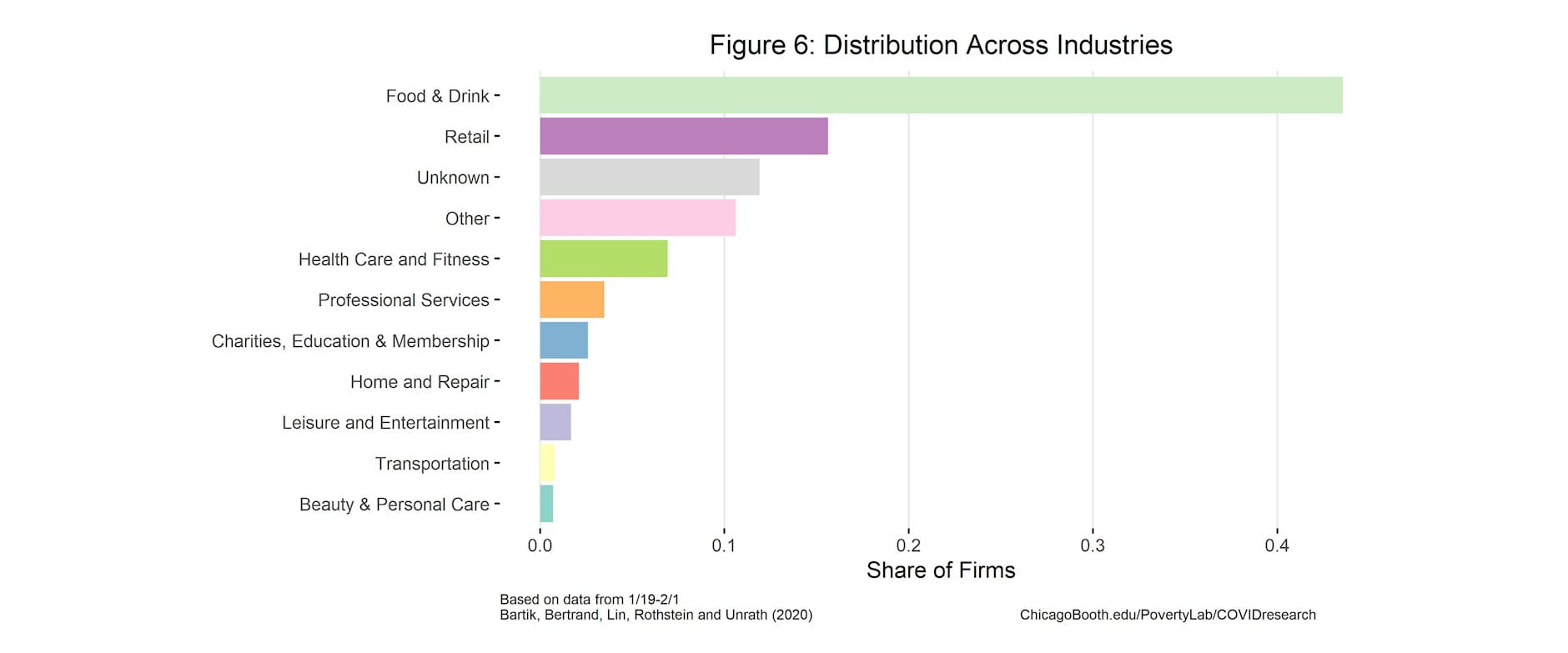 FIGURE 6: A MAJORITY OF HOMEBASE FIRMS ARE IN THE FOOD AND DRINK OR RETAIL INDUSTRIES