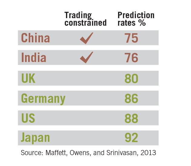 Investors in markets with limited pessimistic trading are hampered by the lack of negative information, the research suggests. In jurisdictions with pessimistic trading, investors do a better job of predicting the likelihood of default. Elsewhere, the reverse is true.