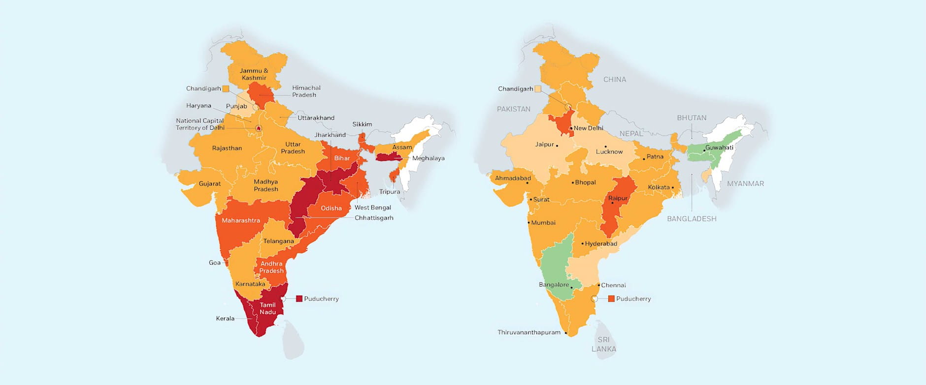 In a report for Chicago Booth's Rustandy Center for Social Sector Innovation, Booth's Marianne Bertrand and Rebecca Dizon-Ross, Centre for Monitoring Indian Economy's Kaushik Krishnan, and University of Pennsylvania's Heather Schofield examined household-level survey data to establish a more comprehensive view of India's initial recovery than national economic indicators could provide. These charts and maps highlight a selection of their main findings.