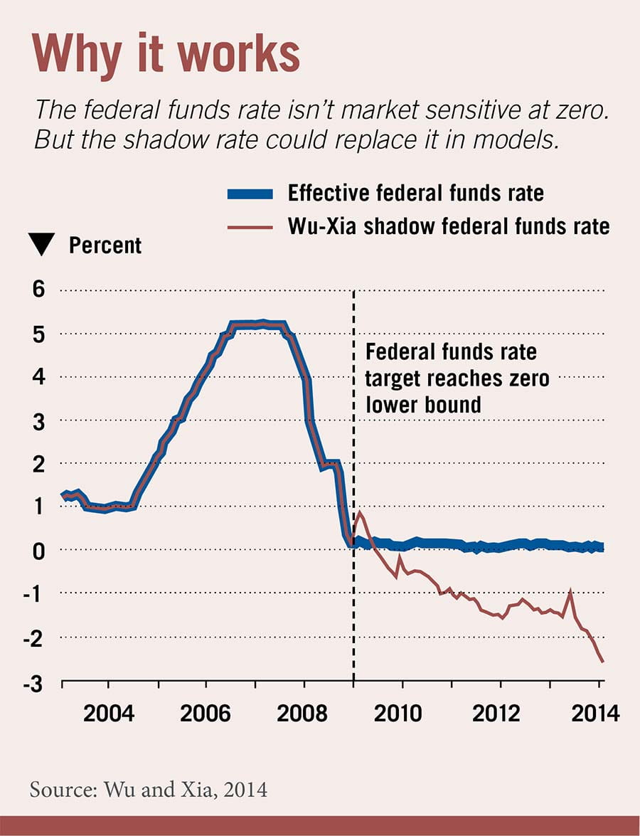 But Wu and Xia suggest there’s a way to avoid tossing out a half-century’s worth of macroeconomic data: they advocate using a shadow rate.