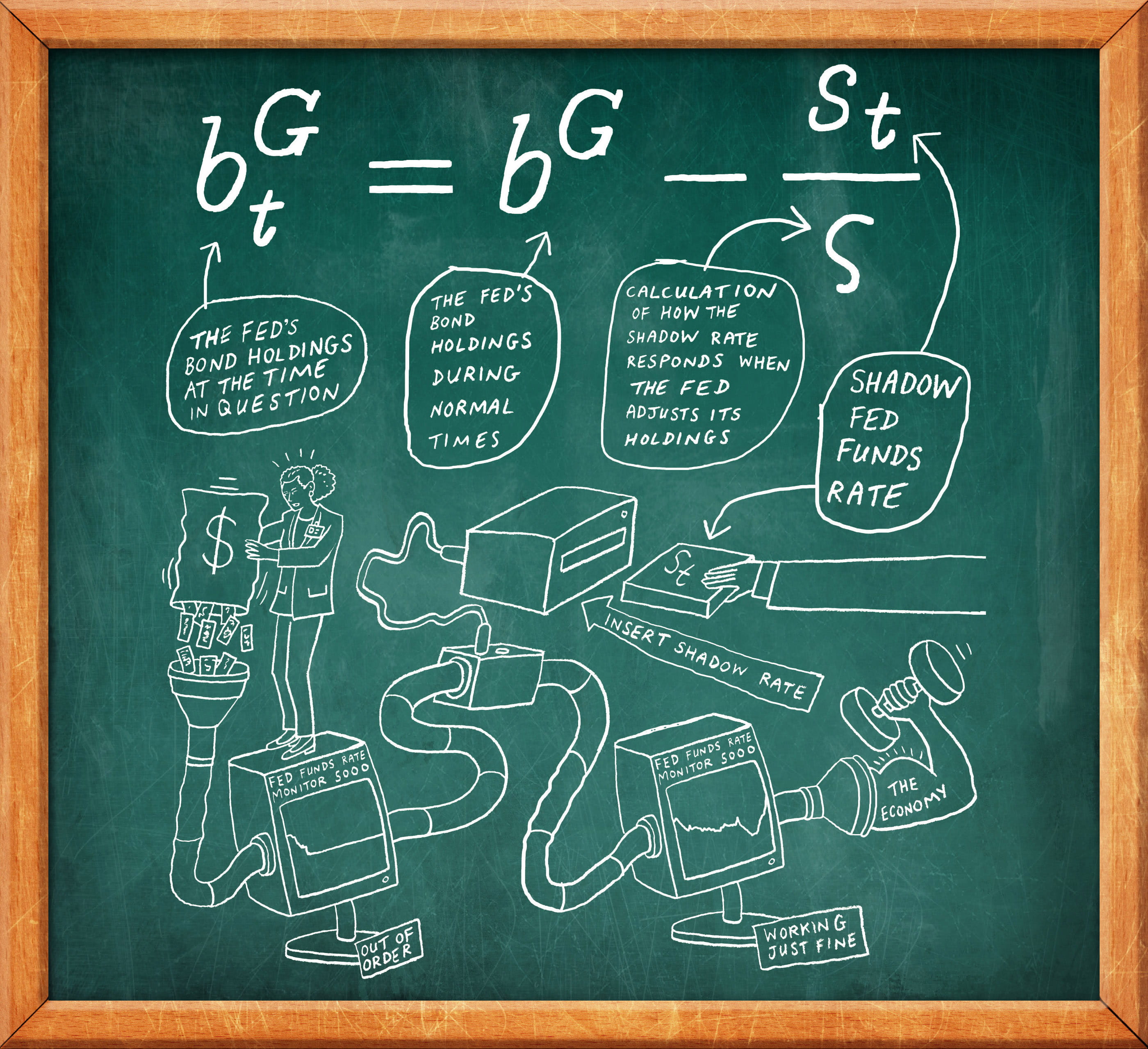 But researchers have proposed a tool, a “shadow rate,” that shows the Fed’s easing—and can be used in established economic models to measure the economic effects.