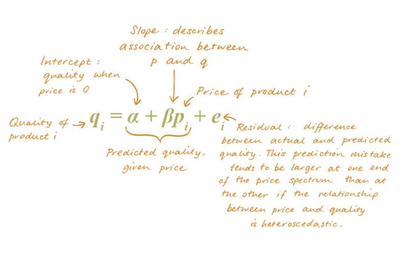A product’s quality can vary more at one end of a price spectrum than at the other—and so can the mistakes consumers make when using price as a stand-in for quality. This variation is known as heteroscedasticity. For example, cheap soap is usually low quality, but the quality of higher-priced soap is less predictable. The opposite is true for wine: expensive wine is usually high quality, and the quality varies more when the price falls. The takeaway: a $500 bottle is likely good, but don’t overlook bargains in the discount bin.