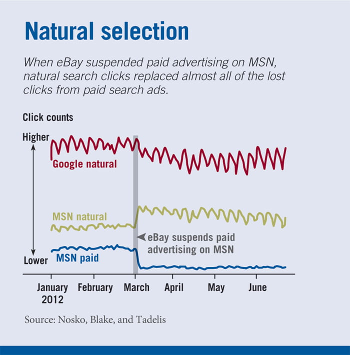 “Shutting off paid search ads closed one (costly) path to a company’s website but diverted traffic to natural search, which is free to the advertiser,” the researchers write.